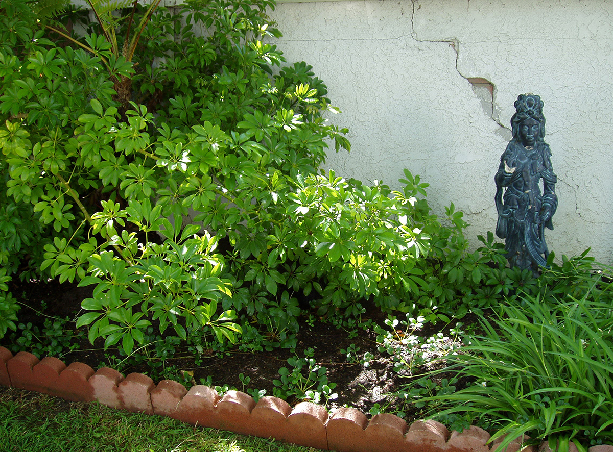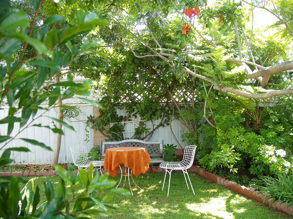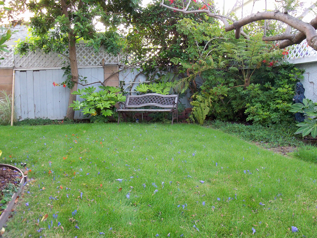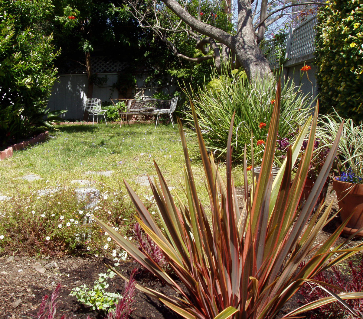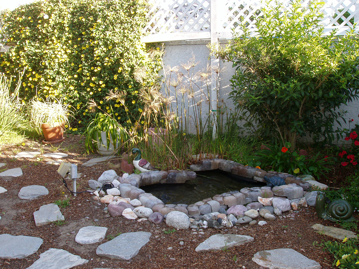 When I first saw this garden, although it was rundown and overgrown, it appealed to me. One end of the garden had high-growing plants and felt private. The greenery and a bubbling pond suggested serenity. It was so small that I thought that I could get it in shape in no time. Although I didn't like some features of the pond, I thought most of the changes would be cosmetic. But when I looked closer, I discovered that the molded pond form was not level; about three inches of the black form would always be visible on one side. So I considered completely rebuilding it—until one night I received a visit from a raccoon who pulled the pump out of the water, removed its filter and tore it into pieces. That was the end of the pond.